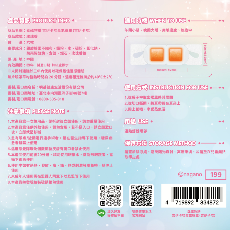 *20分鐘舒緩眼部 平均溫40度 *3種自然香氛 舒適好眠 *隨機附贈吉伊卡哇貼紙