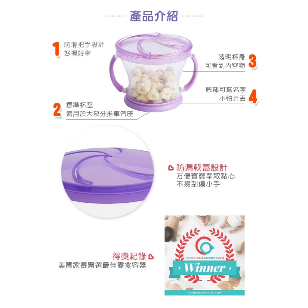 上蓋設計方便寶寶拿取點心,不易刮傷小手。